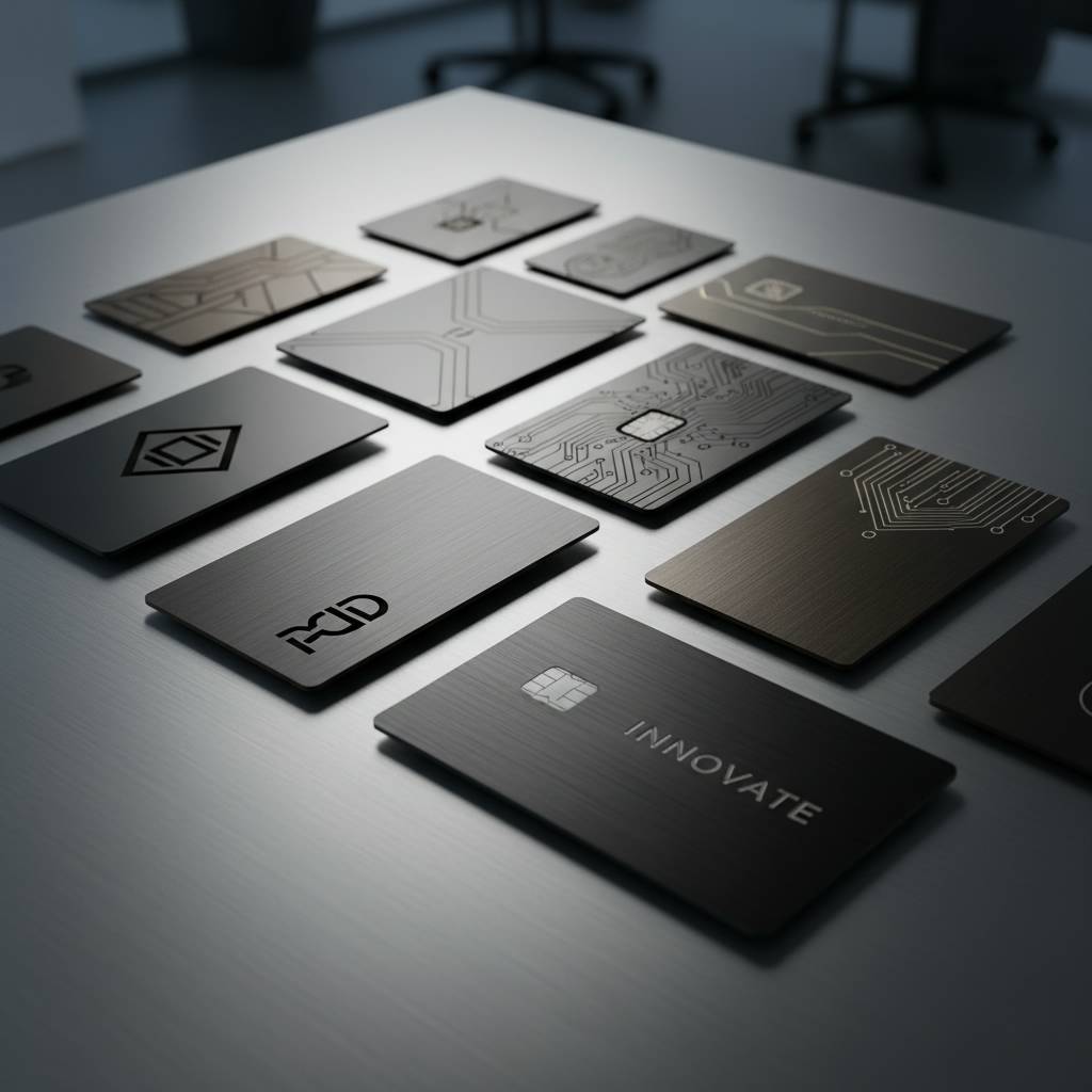 Premium custom etched steel business cards, durable luxury metal cards for unforgettable branding and elite client impressions.